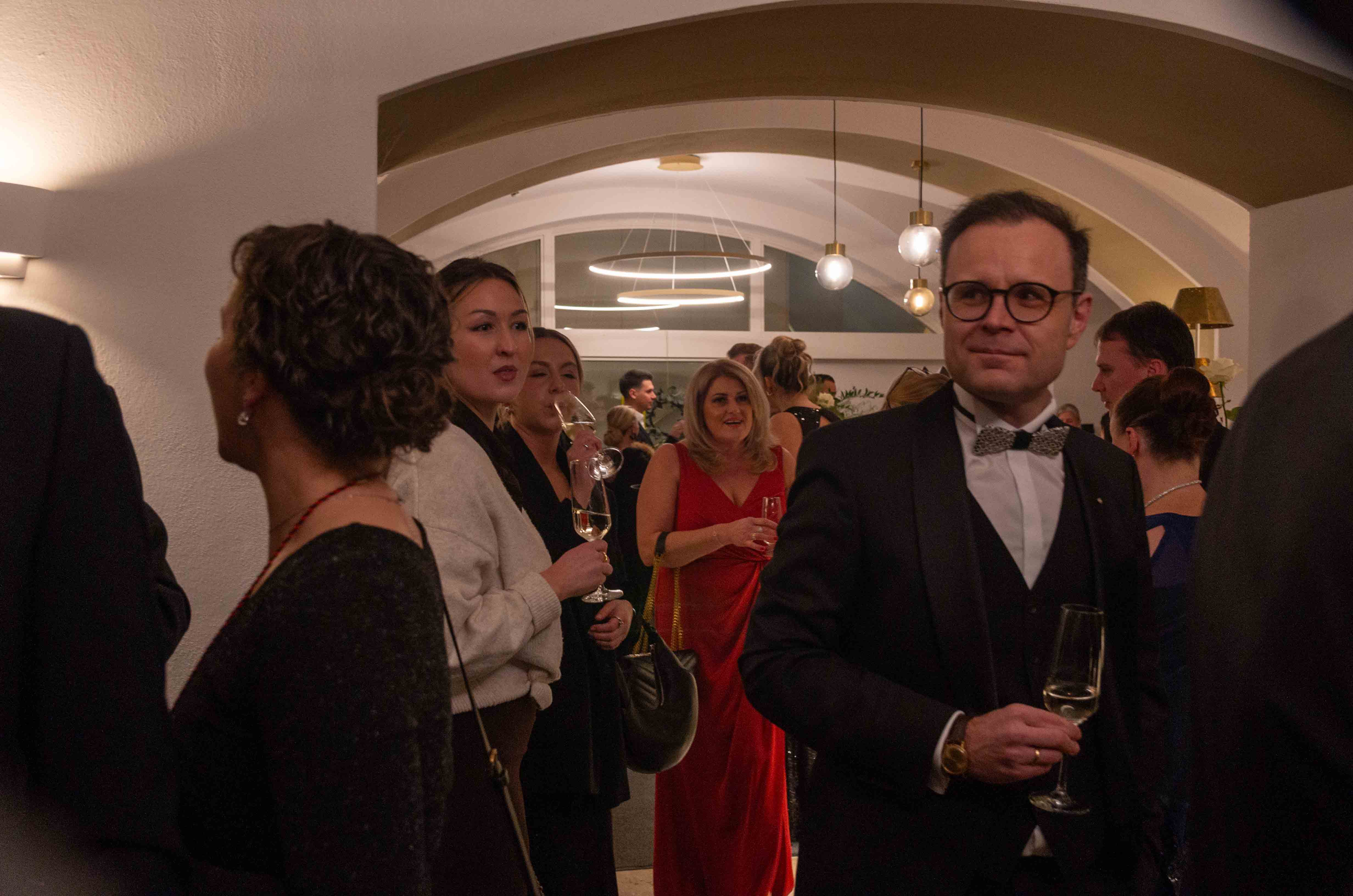 Im Mittelpunkt des Abends standen neben dem kulinarischen Genuss vor allem der persönliche Austausch und das gesellige Miteinander. Nach dem traditionellen Eröffnungswalzer sorgte die Liveband „Loops“ für ausgelassene Stimmung und füllte den eigens freigegebenen historischen Saal bis in die frühen Morgenstunden mit tanzfreudigen Gästen.